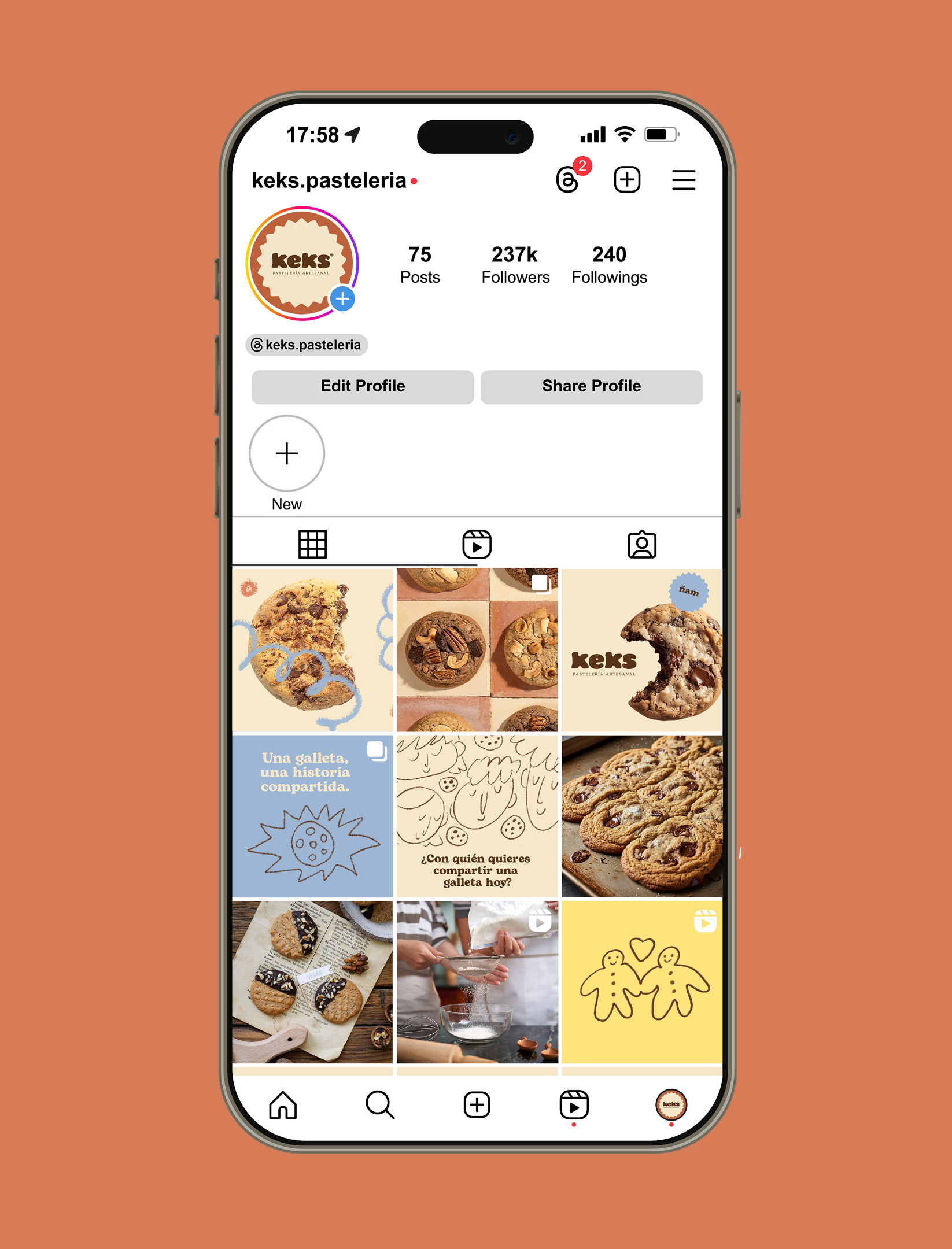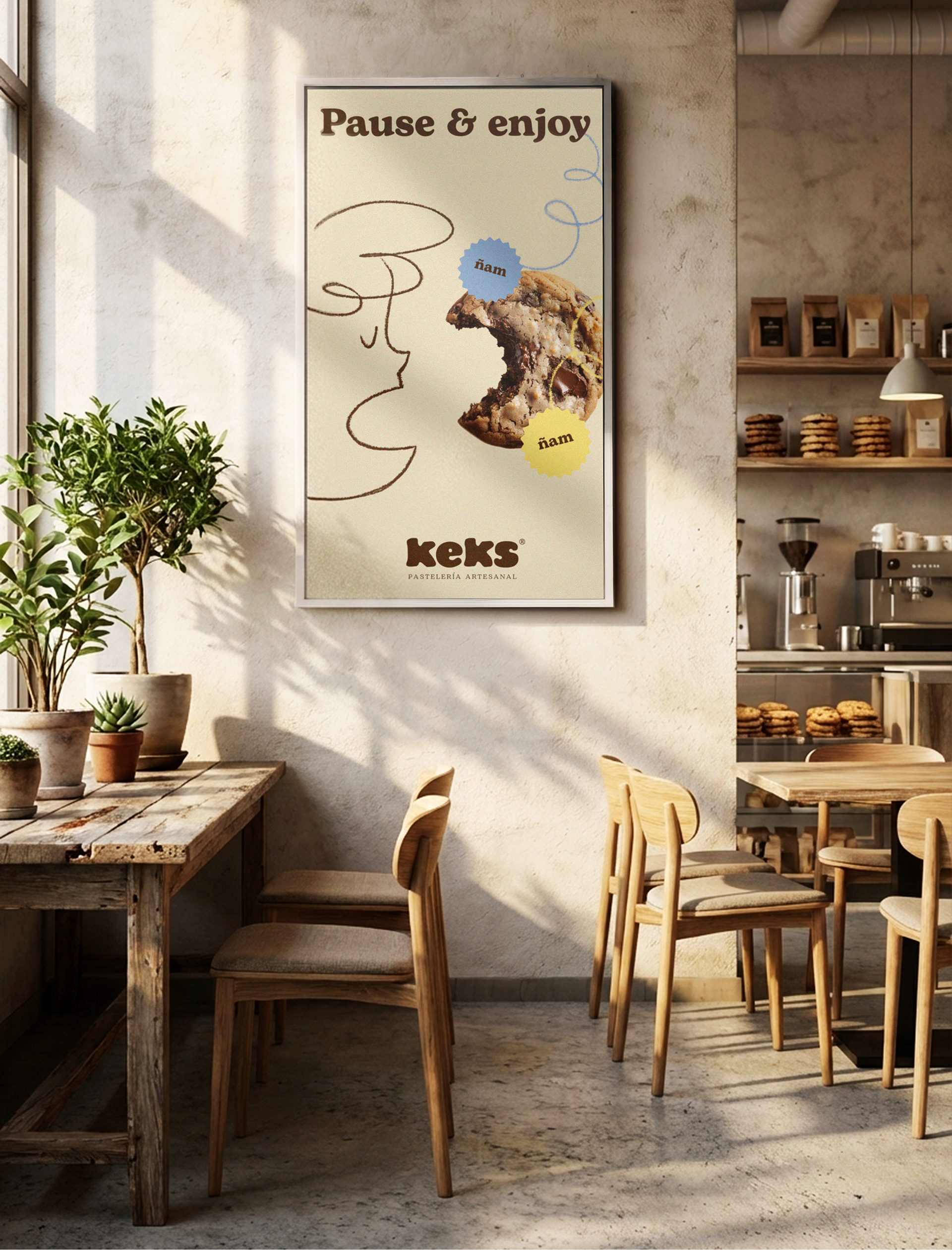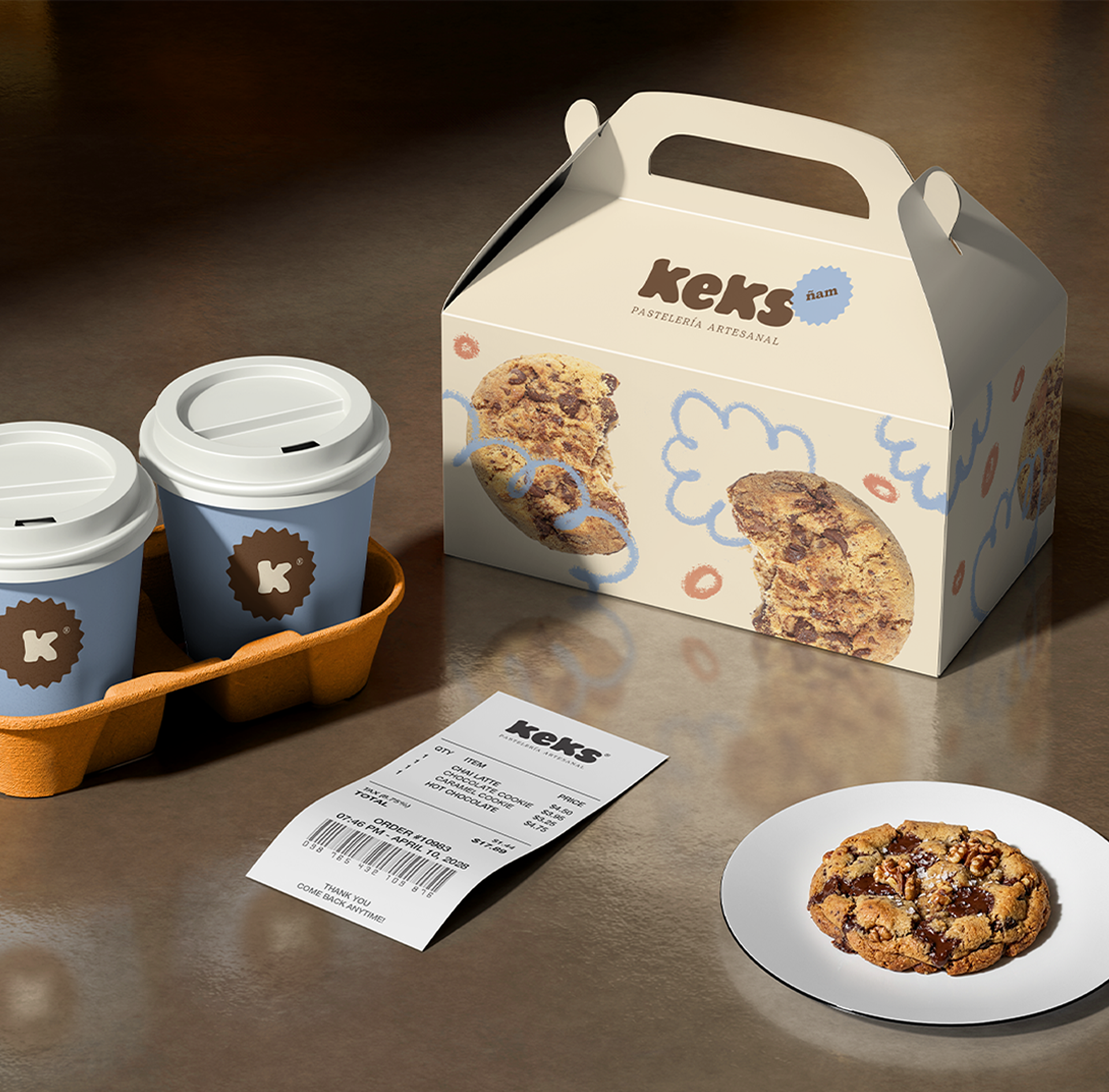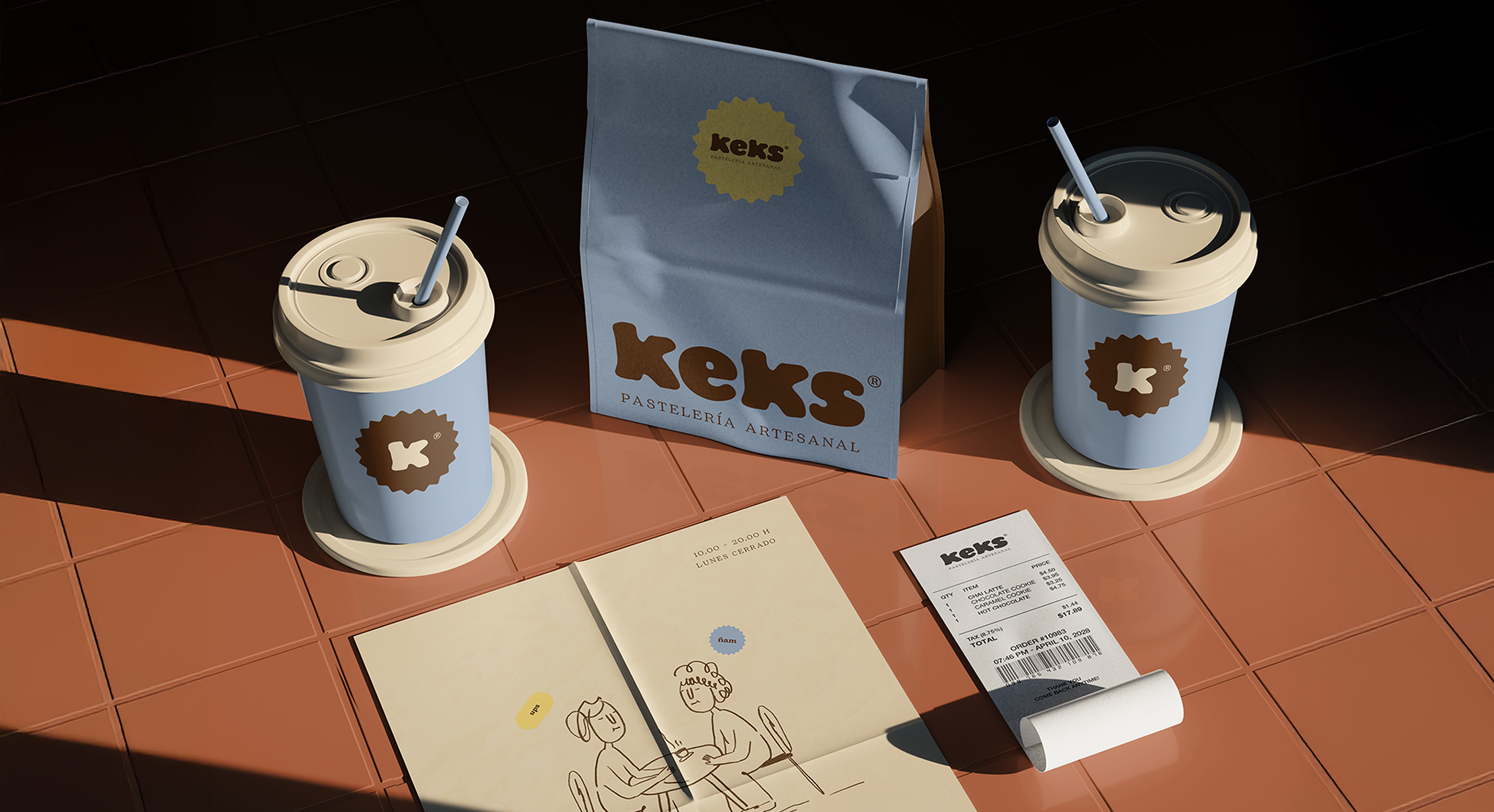 Diseño de identidad visual para Keks, una pastelería y panadería contemporánea con cafetería integrada. La marca se articula en torno a la elaboración artesanal, el uso de ingredientes de calidad y la experiencia del tiempo compartido, entendiendo el acto de consumir como una pausa consciente y cotidiana. Más allá del producto, Keks propone un espacio donde el proceso, el cuidado y la cercanía adquieren un valor central.